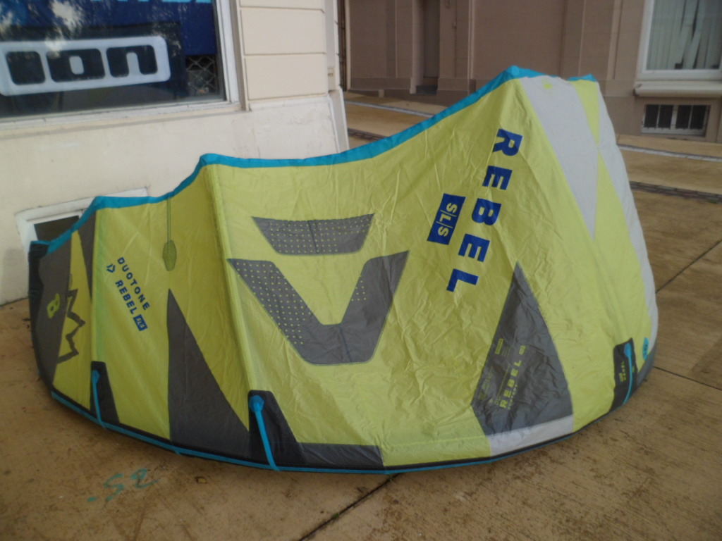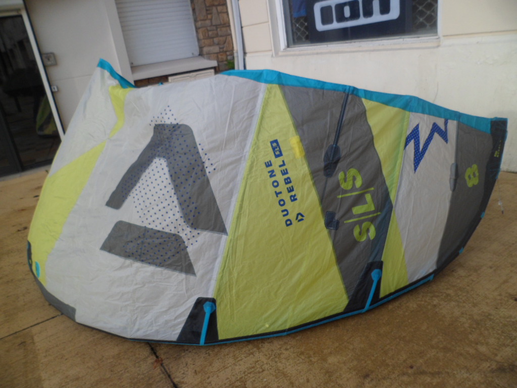 Aile de kitesurf d' occasion DUOTONE REBEL SLS 8 en bon état. Il y a une réparation faite par un voilier.