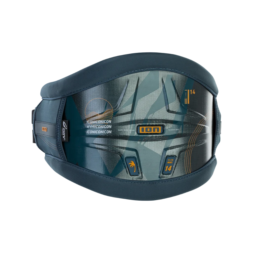 Harnais ceinture ION ICON CURV: Les TAILLES INTERMEDIAIRES, ST, MT, LT complètent les tailles S, M et L, en offrant un dossier un peu plus haut (2 à 3 cm) pour permettre un ajustement parfait à la morphologie de chaque rider. En plus de cet avantage, deux Ergo_Pads intérieurs (profil std et profil bombé) sont interchangeables ce qui permet d' obtenir un soutien lombaire optimal. L'ICON CURV est moyennement rigide (flex index 14) et procure un bon équilibre entre ressenti direct, flexibilité et maintien. Sa construction Curv ultra légère répartit les forces uniformément sur tout le harnais. En même temps, il est assez souple pour offrir une liberté de mouvement optimale. La mousse Hyper_Foam hydrophobe améliore l'ajustement ergonomique général et la légèreté tandis que la Neoprene_Belt apporte de la souplesse sur l'avant. La Spectre Bar profilée d'ION est équipé du crochet en aluminium renforcé, et des Curv_Flaps qui solidarisent le harnais dans son ensemble. L’ICON est livré avec le C_Bar 2.0 d'ION qui comprend déjà le crochet de planche à voile en acier inoxydable.